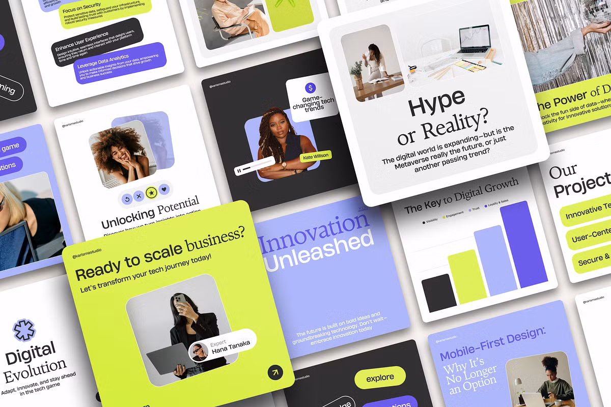 - Engaging Post & Story Templates: Professionally designed, editable templates for various content types – promotions, announcements, Q&A, polls, testimonials – saving you time and maintaining visual consistency.
